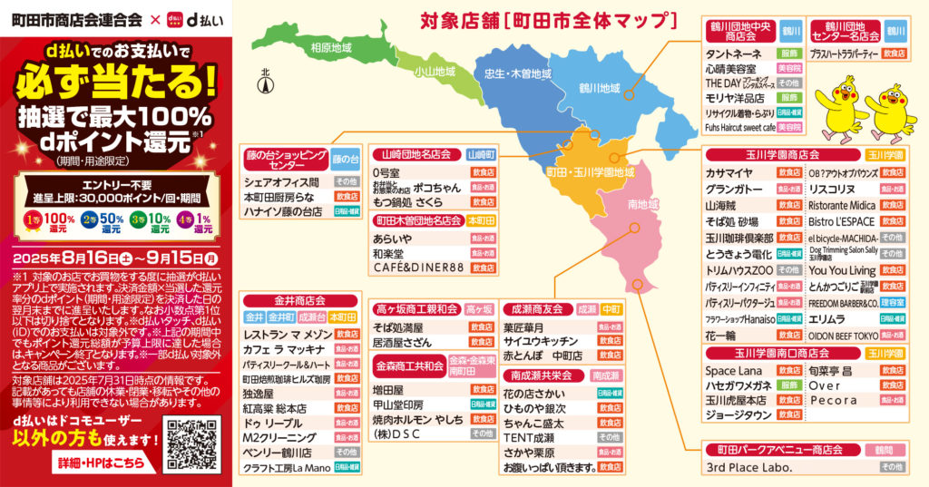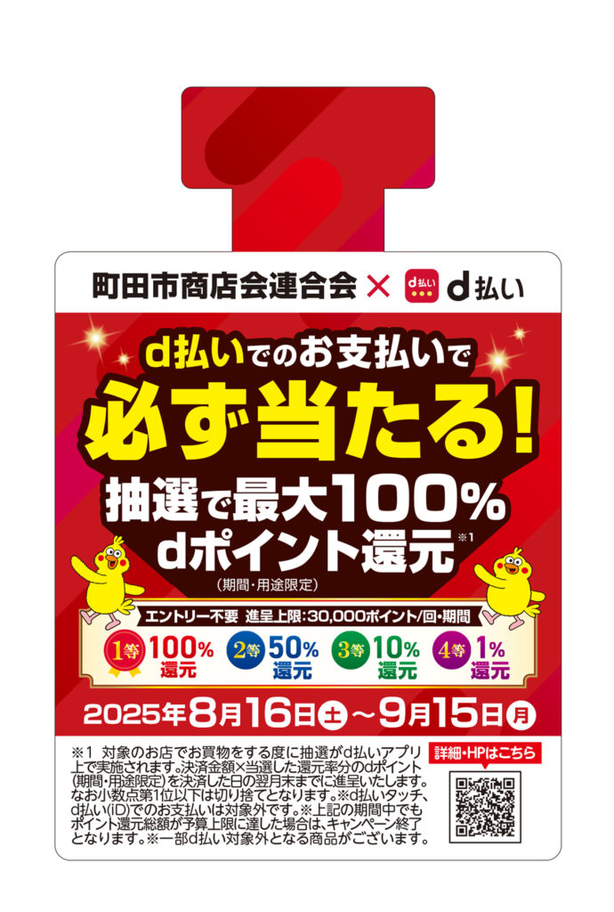 町田市内の対象商店街で、「d払い」でお買い物をするととってもお得!
