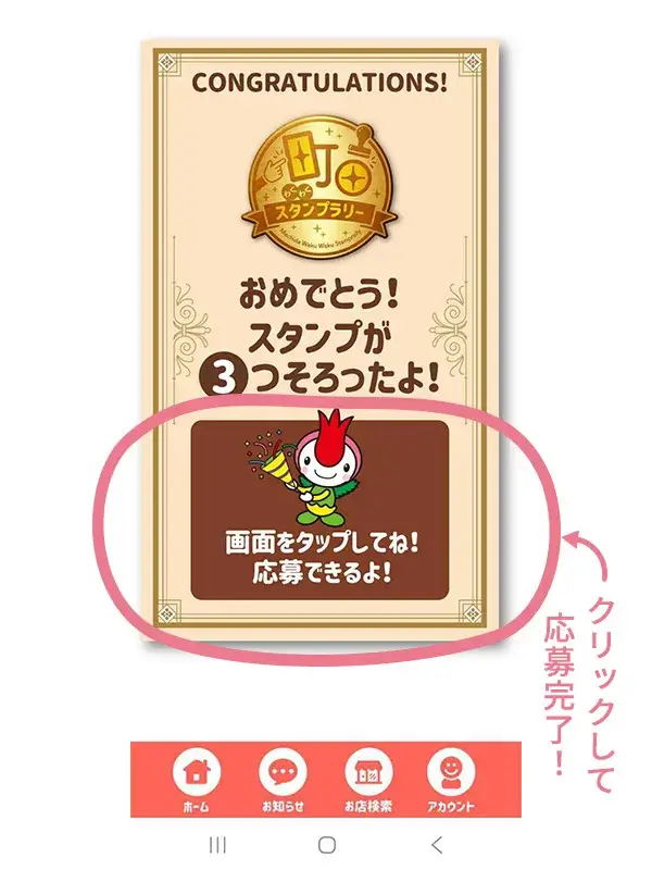 ③スタンプを3つ集めると、応募画面になるのでクリックして応募完了!